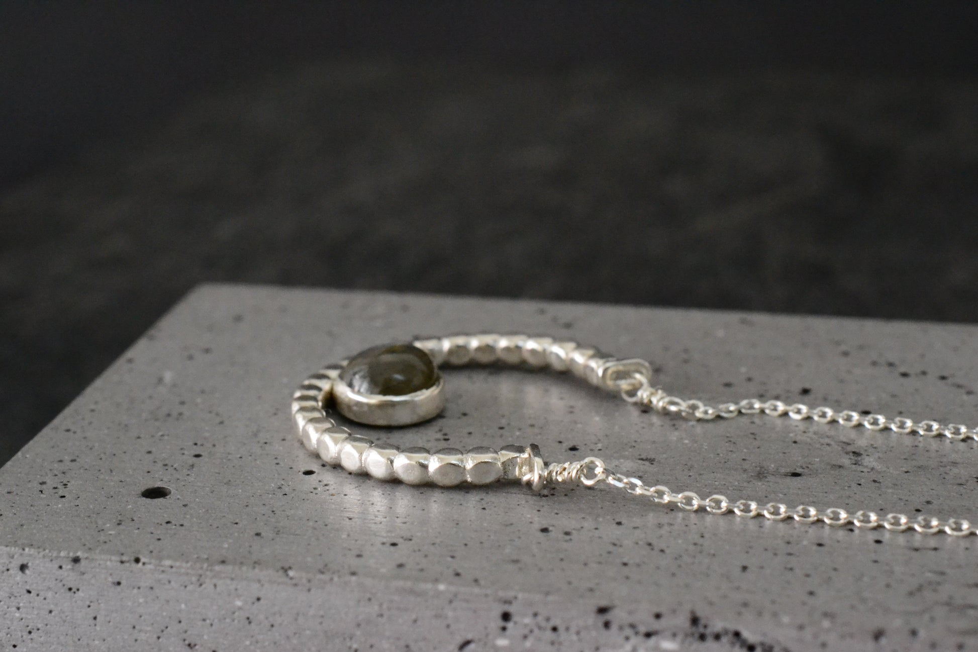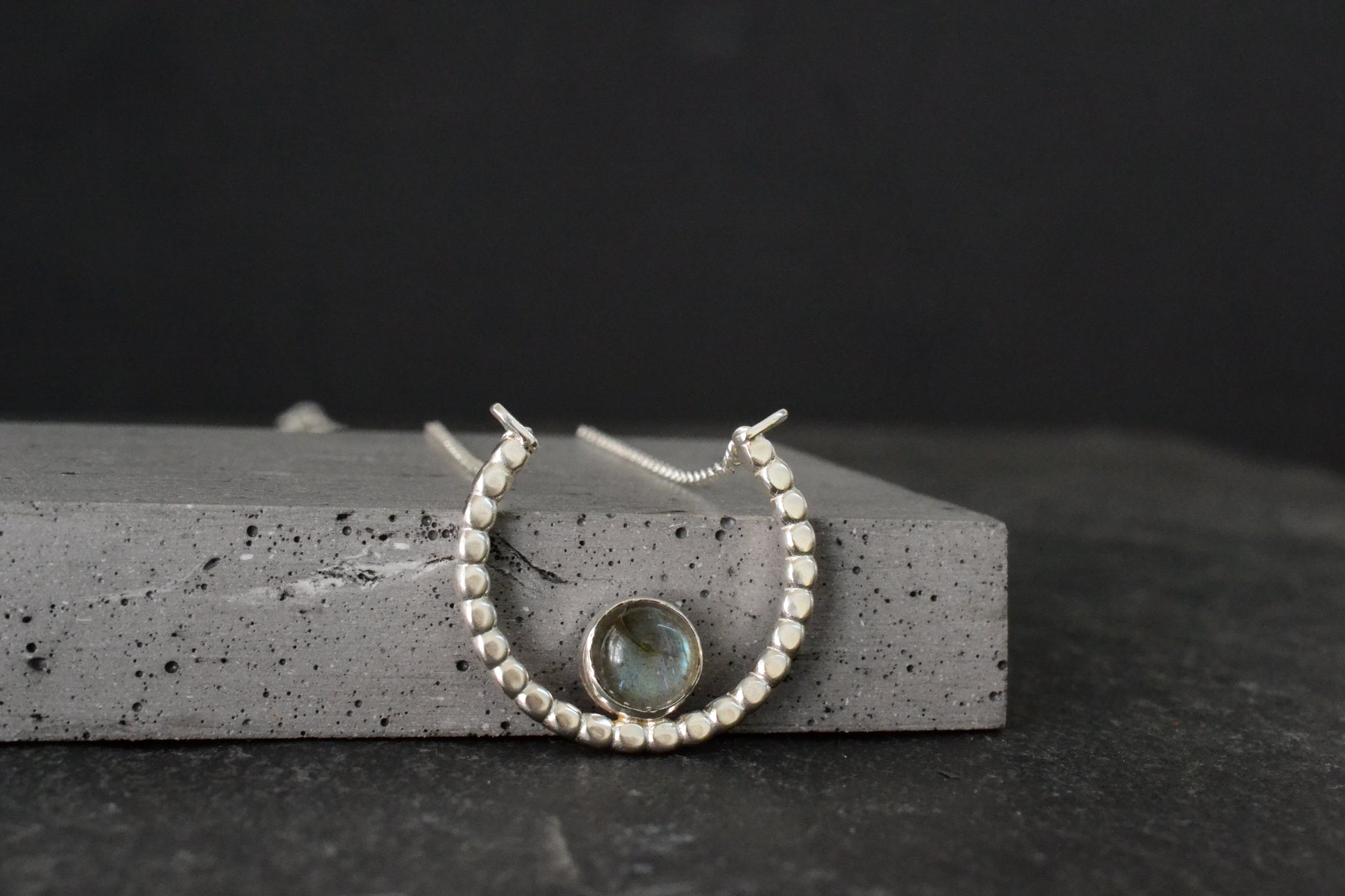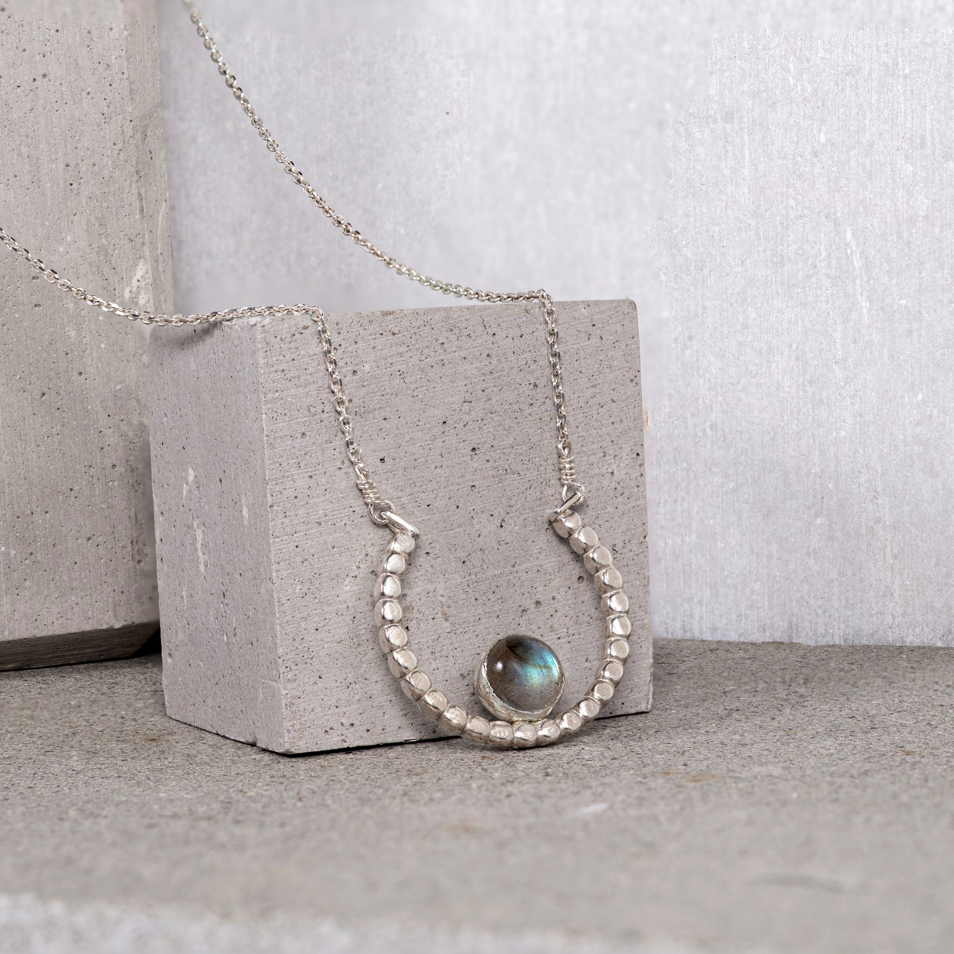 Perfect as a gemstone necklace and a meaningful artisan gift, the design captures both the mystery of the moon and the grounding energy of silver.