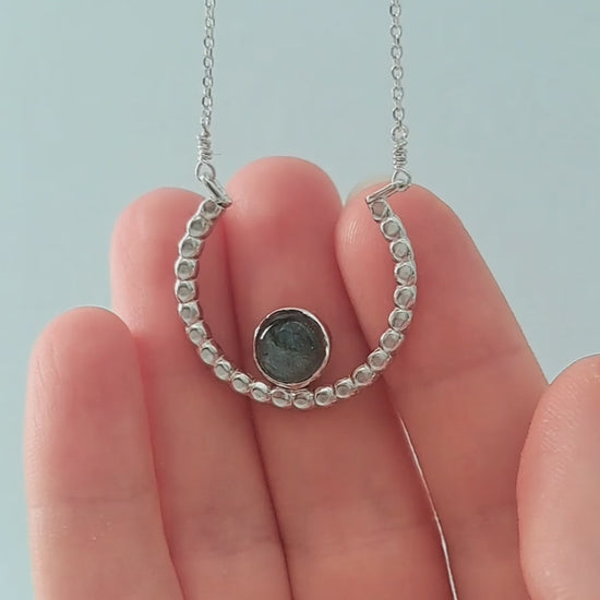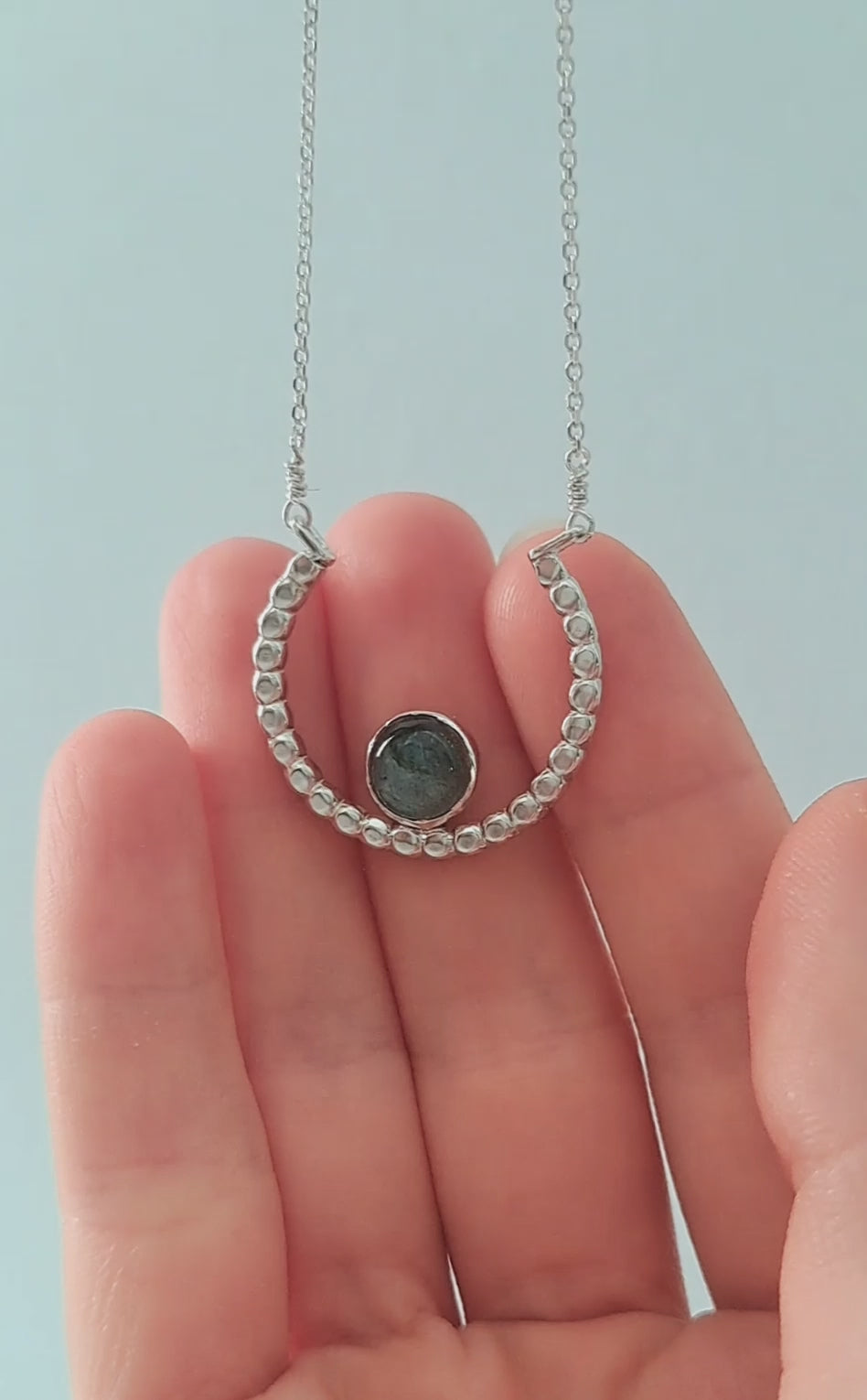 --Aenor--Handmade Labradorite Crescent Moon Necklace - Sterling Silver Artisan Pendant, Bohemian Gemstone Necklace, Modern Silver Jewelry