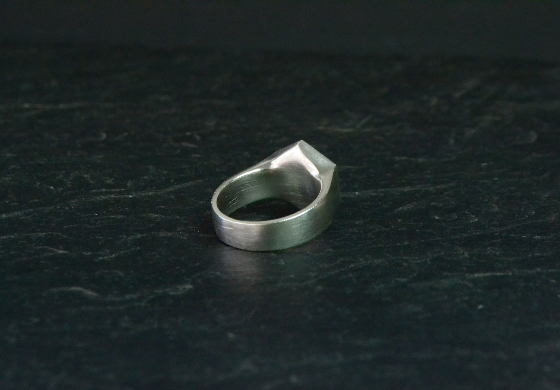 This chevalier (pinky) ring is an everyday statement piece with a subtle dark beauty to it.